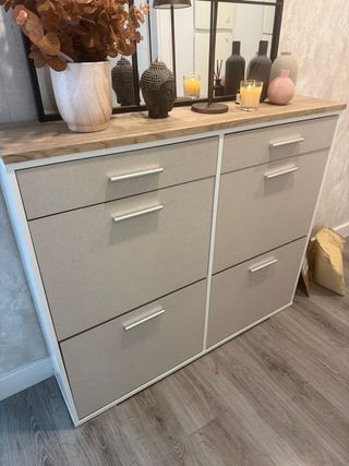 Zapatero recibidor blanco y beige