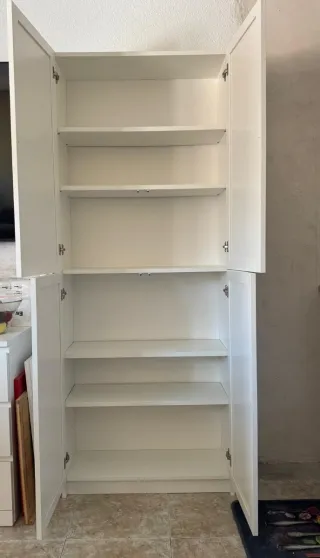 - Medidas en cm: 200 (largo) x 120 (ancho) x 52 (profundo). - Puertas con tiradores metálicos. - Acabado en color blanco. - Está desmontado y empaquetado. - Hay facilidad para recogerlo ya que dispongo de parking y podéis entrar con el coche para cargarlo. Se compró el 05/03/2026 y no se ha llegado a montar porque finalmente adquirimos otro armario. Lo vendemos porque Allmobel, que es la empresa en la que lo compramos, tiene la política de no devolver el dinero en una devolución. La barra de las perchas vino con un desperfecto de fábrica y habría que cambiarla.