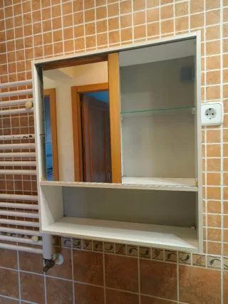 URGE SOLO ESTE MES Armario de baño de Ikea con un diseño moderno y funcional. - Estructura principal en color blanco. - Detalles en madera. - Puerta con espejo. - Estantes interiores ajustables.