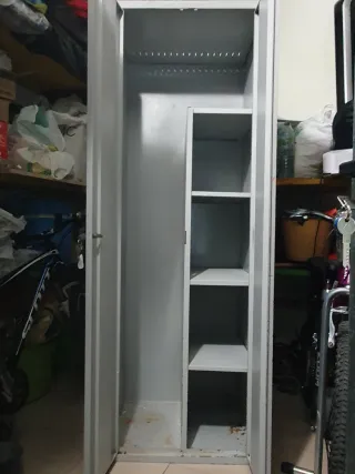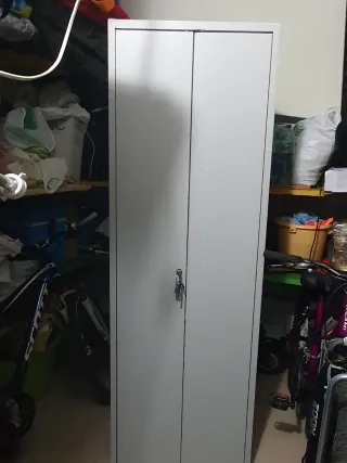 Armario escobero de metal, ideal para organizar tu espacio. Con cerradura. Chapa de buena calidad. - Diseño de dos puertas. - Acabado en color gris y blanco. Se puede ver sin compromiso. Posibilidad de entrega.