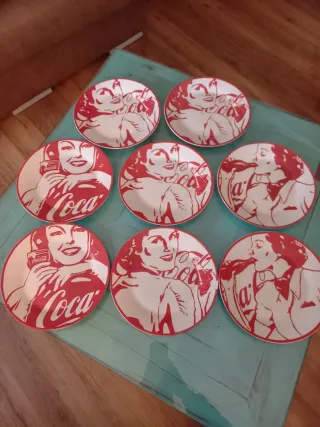Conjunto de 8 platos de cerámica con un diseño clásico de Coca-Cola. Solo uno con un pequeño esconchon. Producto oficial coca-cola. - Diseño vintage con figuras femeninas. - Colores rojo y blanco. - Piezas de colección. MIRA MI PERFIL!!! HAY DE TODO. NO LEER: platos hondos llanos ensaladera sopera cuchillo tenedor cuchara cucharilla pinzas tenazas barbacoa jarras sartén olla plancha cuenco mortero paellera robot cocina microondas horno tostadora sandwichera calentador frigorífico lavadora batidora heladera cafetera regalo decoración biombo cuadro marco lienzo puerta ventana cristal plata oro corredera mosquitera