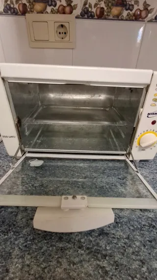 Hornillo tostador Nishica en color blanco. Ideal para preparar tus comidas. - Potencia de 350 Watts. - Puerta de cristal. - Selector de tiempo y temperatura. -Incluye bandeja de metal