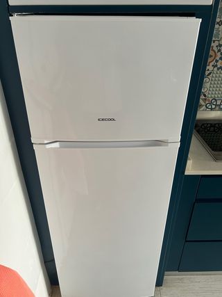 Frigorífico de la marca ICECOOL en color blanco. - Diseño moderno y elegante. - Dos puertas independientes.