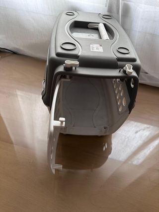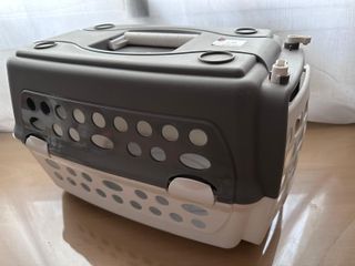 Transportín para mascotas con un diseño moderno y funcional. Ideal para viajes o visitas al veterinario. - Fabricado en plástico resistente. - Ventilación a través de rejillas laterales. - Asa superior para facilitar el transporte. - Cierre seguro para la puerta.
