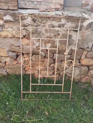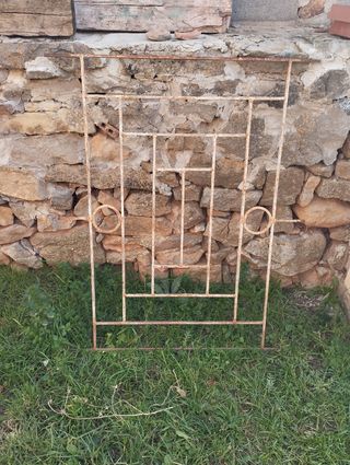 Reja de forja antigua. Medidas: 78 cm de ancho 123 cm de alto Los 6 extremos que sobresalen 12 cm Hay que pintarla, era blanca