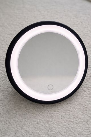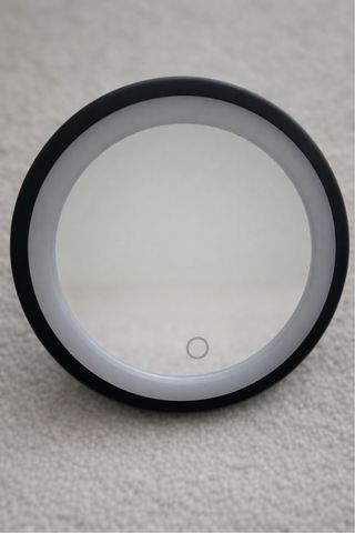 Espejo de aumento con anillo de iluminación LED de luz blanca (botón táctil). Perfecto para realizar tareas de aseo minuciosas como depilar cejas, maquillaje o afeitado. - Superficie reflectante de cristal. - Base y estructura de plástico negro - Dispone de ventosa para fijarse sobre una superficie lisa no porosa (cerámica con acabado brillo, cristal, espejo, madera lacada brillo, etc). Sin necesidad de tornillos -Su ventosa rota 360º lo que permite orientar el espejo cómodamente -En la parte trasera dispone de botón manual para encender y apagar la luz LED y puerto USB tipo C - Para su uso requiere de 4 pilas AAA ( no incluidas)