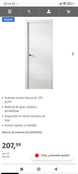 Puerta de interior con acabado lacado blanco. - Acabado lacado blanco - Material de gran calidad están completas vendo las 2 juntas por 100€ la mitad de lo que cuesta 1 nueva son de Leroy Merlín no las vendo sueltas tiene vanibela marco pueden venir i verla completamente nuevas