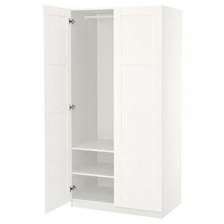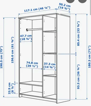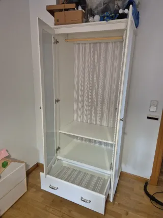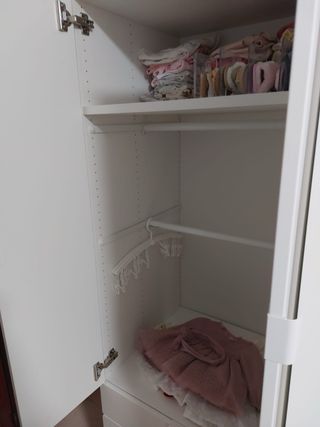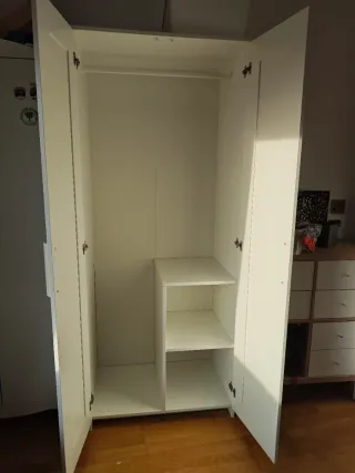 Armario de la serie Paz de Ikea. Cuenta con un diseño moderno y funcional. - Puertas abatibles. - Barra para colgar ropa. - Estantes interiores. Valorado en 190€