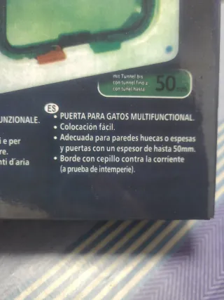 Puerta para gatos multifuncional, ideal para instalar en paredes o puertas. - Adecuada para paredes huecas y sólidas. - Compatible con puertas de hasta 50 mm de grosor. - Borde con cepillo para evitar corrientes de aire. - Resistente a la intemperie.
