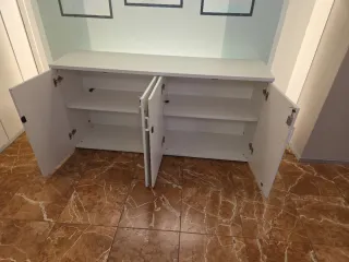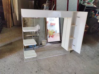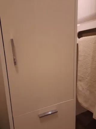Descripción: Mueble columna de baño en color blanco, ideal para aprovechar el espacio y mantener todo ordenado. Tiene varios compartimentos con puertas y un cajón inferior para guardar toallas, productos de higiene o limpieza. Está en buen estado y es muy práctico para baños pequeños o para añadir almacenamiento extra. Medidas: • Alto: 166 cm con patas (150 cm sin patas) • Ancho: 40 cm • Fondo: 27 cm