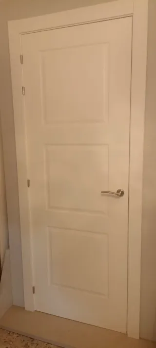 Vendo puertas de interior lacadas en blanco en buen estado. Se van a quitar por reforma y funcionan perfectamente. Incluyen manubrio dorado elegante. ✔ Madera maciza ✔️ Lacado blanco moderno ✔ Diseño clásico con molduras ✔ Ideales para reforma o sustitución ✔ 7 unidades disponibles (2 de ellas con pestillo para baño) - medidas: 200x71,5x3 cm Precio por unidad 45€ (50€ con pestillo) Descuento si te llevas varias 35€ (40€ con pestillo) Las fotos son parte de la descripción