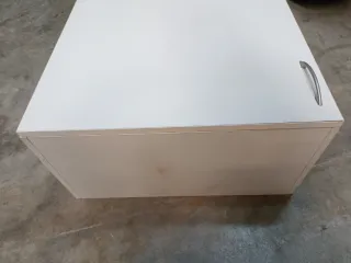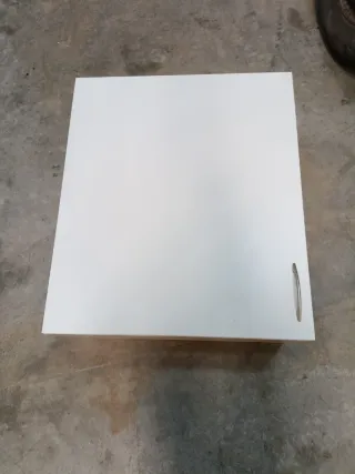 Mueble de madera con unas medidas de 70 cm de ancho por 60 cm de alto. Fondo 30 más puerta Puerta un poco hinchado en una zona - Diseño moderno y funcional. - Acabado en blanco. - Tirador integrado.