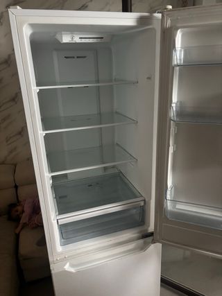 Frigorífico de la marca Qilive en color blanco. - Puerta superior para congelador. - Tirador integrado. - 2 puertas 167cm. - Clasificación energética: E. - Capacidad total: 247L. ENTREGA EN MANO. RECOGER EN ZARAGOZA.