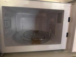 Microondas Samsung en color blanco. Un electrodoméstico práctico para tu cocina. - Diseño compacto. - Panel de control intuitivo. - Puerta con ventana. - Marca: Samsung.