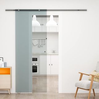 Puerta Corredera de Vidrio Esmerilado con Riel de Aluminio para Baño Cocina Estudio Vidrio 205Cm