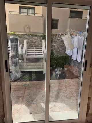 Puerta balconera en corredera con doble cristyal, medidas 1200 ancho x 2100 alto. dispone de sistema persiana para instalar por la parte exterior.precio no negociable