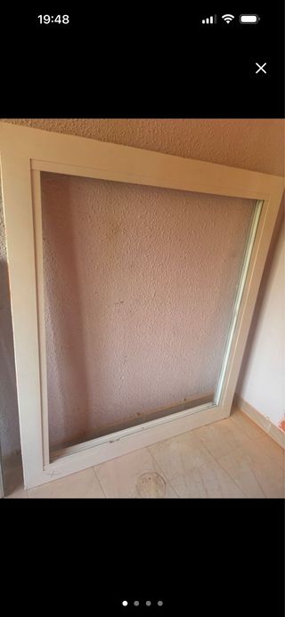 Se vende ventanal de aluminio con sistema de ventanas correderas - Marco de aluminio. - Diseño de ventanas correderas. únicamente hay que poner nuevo los tornillos. Las medidas del ventanal son de 112 cm de alto por 130,5 cm de ancho. Precio muy económico