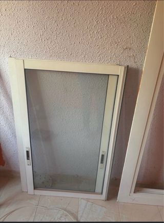 Preciosa ventana corredera de aluminio blanco, de dos hojas. Está en buen estado, lista para instalar. - Marco de aluminio blanco. - Dos hojas correderas. - Cristal translúcido.camar - Medidas ancho 149,5 cm x alto 144,5 cm