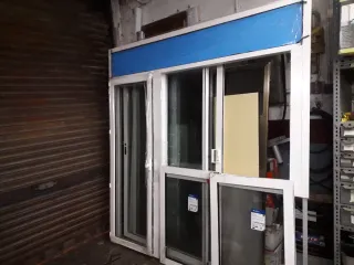 estructura de aluminio blanco con tres hojas, ideal para renovar tu hogar. Está en buen estado, se entrega como esta - Medidas: 2,91 ancho x 2,44 alto (hueco de luz ) - Cristal con cámara de 4mm - Incluye 3 piezas - Marca SGG CLIMALIT