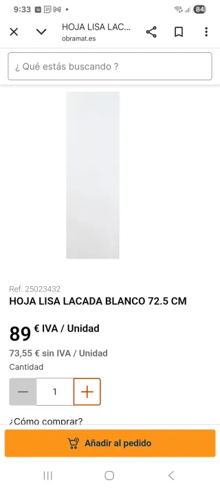 Puerta corredera lacada en blanco. La compré y al final no la he puesto. Incluido la tapeta de arriba y lateral para montaje. Todo nuevo sin usar. - Medidas: 72.5 cm de ancho. - Acabado liso.