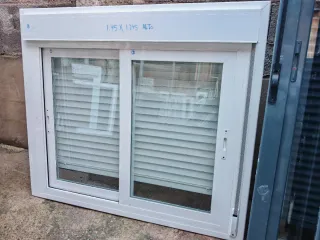 Ventana de aluminio con rotura de puente térmico (mucho más aislante que el aluminio normal), blancas, 2 hojas correderas, persiana monoblock, cristal doble climalit (4 mm + Cámara de 12mm + 4 mm) Son de segunda mano pero bastante bien conservadas Cada medida tiene un precio Medidas: 144,5 x 124,5 x 12 También disponibles del mismo lote: 216,5 x 124,5 x 12 263 x 124,5 x 12 SOLO RESERVO CON SEÑAL DISPONIBLES MÁS VENTANA, BALCONERA, VENTANAL, PUERTA, FIJO, PVC, RPT... EN MI PERFIL 🚚 TRANSPORTE NO INCLUIDO EN EL PRECIO