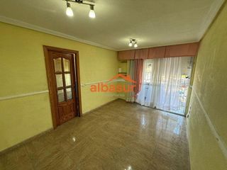 Piso conservado totalmente exterior con una superficie de 96mº2 consta de hall de entrada, cinco dormitorios, un baño completo con placa ducha, salón-comedor y cocina amueblada. Suelo de porcelánico, carpintería interior de madera y ventanas de aluminio lacado en gris. Puerta blindada, A/C, dos armarios empotrados, patio, ascensor, terraza y termo eléctrico con capacidad de 80 litros. Gastos de comunidad: 100€ agua incluida. I. B. I: 200€ anual. No dude en visitarlo con Fransal Asesores.