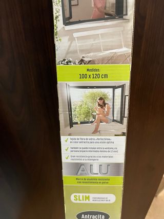 Ventana de aluminio, doble acristalamiento, color blanco, incluye mosquitera, no incluye persiana. Medidas 1'19 ancho x 1'15 alto.
