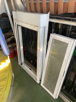 Se venden ventanas de aluminio con rotura de puente térmico. - Material: Aluminio. - Característica: Rotura de puente térmico (RPT). En perfecto estado. - Seis ventanas de aluminio. - Color blanco. - Acabado impecable. - Oscilobatientes - Con persianas de aluminio blanco y mosquiteras - Todas tienen también un marco embellecedor de aluminio bien ingletado - Cristal climalit doble y cámara se aire - Tienen rotura de puente termino - Tienen muy poco tiempo y se venden por reforma. - 1 ventana de 68 de ancho por 118 alto por 150€, reja 40€ - 5 ventanas de 88 x 118 a 225€ cada una, rejas a 50€ Si te llevas todo te lo dejo en 1500€
