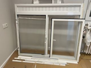 Se vende ventana de aluminio, con una hoja fija y otra batiente. Además rejilla de ventilación de aluminio superior. Cristal traslucido. Medidas totales 144x128 (anchoxalto). Cristal fijo de 67cm de ancho. Rejilla de ventilación de 16cm. Uso de 1 mes