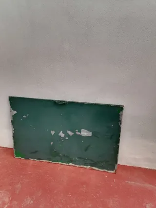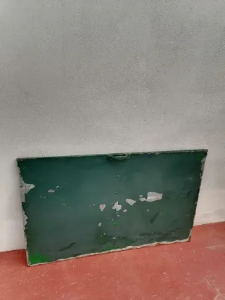 Panel vierte aguas , chapa vierteaguas , compuerta de chapa , burlete vierteaguas (en internet) , esto tiene varios nombres pero esta chapa es la que se pone en la puerta de la calle los días de lluvia para que no entre el agua en casa, o no se moje la puerta de la calle . Esta en perfecto estado , solo habría que darle una mano de pintura , es de chapa o hierro y tiene un asa . Medidas: 102cm de ancho , 65,5cm de alto y 1cm de grosor , pesa un total de 4 kilos Si me cojes varios articulos te hago precio ESCUCHO OFERTAS Hago envíos Más cosas interesantes en mi perfil