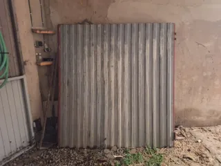 Se venden dos hojas de puerta de garaje. - Material: chapa metálica acanalada. - Color: gris. Y rojo.