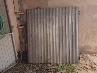 Puerta de chapa con medidas de 2,70 metros de alto por 2,70 metros de ancho. - Material: Chapa.