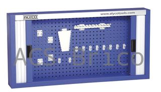 ARMARIO PUERTAS CORREDERAS 1750X750X195 MM ALYCO 192804 Armario vertical de pared metálico con fondo de panel perforado y estructura de armario con cierre de puertas correderas y cerradura con llave. Incluye ganchos para colgar herramienta. Armario metálico robusto de altura 750 mm y profundidad de 195 mm. Compuesto de panel mural de chapa perforada de 1mm, pintada al horno electrostático, de grosor con agujeros de panel de 10x10 mm. La estructura es metálica de acero pintado al horno electrostático y tiene orificios en la parte trasera para colgar a la pared. También tiene orificios en la parte inferior para colocar sobre una...