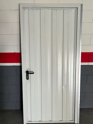 Puerta peatonal de chapa con acabado en blanco. -altura: 2100 mm -ancho: 1000 mm