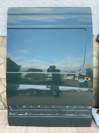 Puerta corredera para Mercedes-Benz Sprinter W906. Recién pintada con ligeras abolladuras. Esta vacía por dentro, solamente la chapa. - Color verde oscuro. - Incluye tirador de puerta.