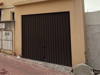 puerta garaje abatible de chapa color marrón. medida hueco util 2,05m para encastrar en dintel de 2,20m. Ancho util 2,40m.
