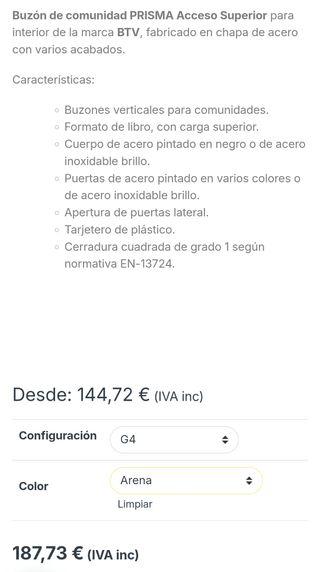 Buzón de Comunidad PRISMA Acceso Superior BTV G4 Color Arena