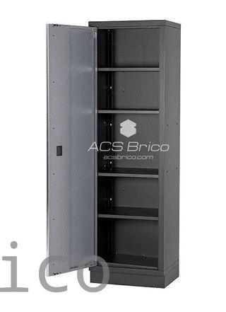 ARMARIO ALTO CON PUERTA SIMPLE ALYCO 192851 DESCRIPCION: - Armario sólido muy válido para ambientes de taller con herramientas pesadas. - Dispone de cerradura - Las baldas pueden desplazarse para arriba o abajo según las necesidades y volúmenes de las herramientas. - Forma parte de los conjuntos modulares y pueden realizarse combinaciones de armarios y módulos según necesidades. - Múltiples complementos y repuestos para completar un entorno de trabajo. CARACTERISTICAS: - Estructura de acero de 1 mm. - Chapa de acero de 0,8 mm. - Incluye 4 baldas. - Incluye cerradura centralizada. - Dimensiones: 2000x600x458mm (Alto x Ancho x F...