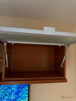 Mueble colgado moderno en excelente estado. Muy sólido y bien cuidado. Módulo de pared ideal para zona TV o salón. Cuenta con compartimentos amplios y puertas, perfecto para libros, decoración o almacenamiento. Acabado en madera cálida (posiblemente chapa), elegante y fácil de combinar. Se fija a la pared. Listo para usar. ⚠️ En este anuncio se vende únicamente el mueble colgado superior. El mueble inferior se vende en otro anuncio.