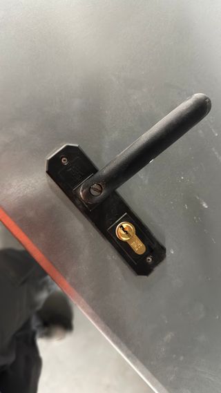 Puerta de chapa gris, ideal para trasteros o cuartos de servicio. Incluye manilla negra. - Material: Chapa. - Color: Gris. - Incluye manilla.