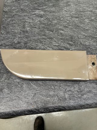 Pieza de chapa para el umbral bajo de puerta de Land Rover Santana. - Color beige. - Forma curva en un extremo.