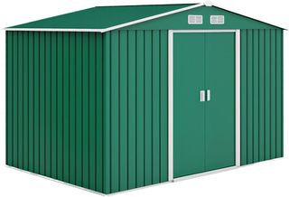 Casita De Jardín 2.9M² en Chapa de Acero, Cobertizo para Herramientas de Jardín con Base, Ventilación y 2 Puertas Correderas, 261X131X182 Cm, Verde
