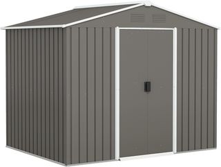 MATERIAL DE ALTA CALIDAD: Esta caseta de jardín está hecha de chapa de acero pintada para prevenir la corrosión y el óxido. Dimensiones internas: 243L x 184P x 175Acm, ideal para herramientas de jardín y accesorios. BUENA VENTILACIÓN: Equipado con 4 salidas de aire para evitar la humedad y el moho. DISEÑO PRÁCTICO: 2 puertas correderas para un acceso facilitado, cerrables con candado (no incluido) para mayor seguridad. DIMENSIONES: 258L x 206P x 178Acm, puerta: 95.5L x 154Acm. NOTA: Sin suelo, instalar sobre una superficie plana. Retirar la nieve del techo para evitar colapsos.