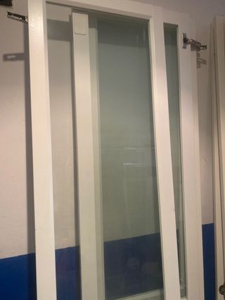 Se vende entrada completa de aluminio y cristal. Ideal para negocio. - Marco de aluminio blanco. - Puerta de cristal. Puerta cada una de 65cm de ancho por 225 de alto. Retirada. Ver sin compromiso.