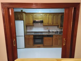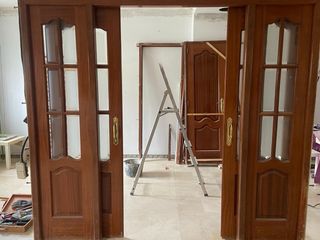 Conjunto de puertas de madera maciza con un bonito acabado. - Diseño clásico con detalles. - Color madera natural. -Incluye todo Puertas que se venden ahora mismo en tiendas pero a un menor precio, están completamente nuevas, se venden porque no nos quedan buenas ya que vamos a hacer las puertas mas grandes Incluye 4 puertas de madera como en la foto y una de cristal Preguntar sin compromiso