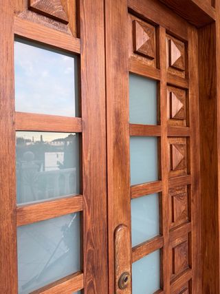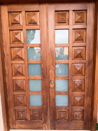 Puerta doble de madera maciza con cristales