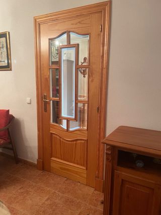 Puerta interior completa, madera con cristal