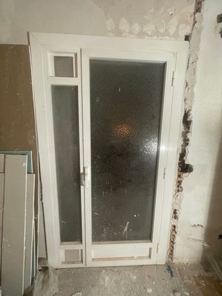Puerta de doble cristal con marco de PVC. - Cristal tipo Climalit para mayor aislamiento. - Marco de PVC blanco. - incluye marco perdido nuevo - medidas: 0,75 x 2,10m