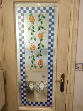 4 Preciosas vidrieras para puertas. Se regalan las puertas si las quieres 70€ cada vidriera - Marco de madera oscura. - Cristal esmerilado con motivos. - Tiradores dorados.