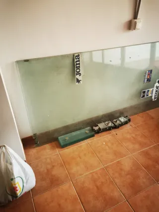 Cristal para mesa de ancho 1,05 cm gordo 5 mili largo 1,80 - diseño un poco en las esquinas ovalado - está perfecto